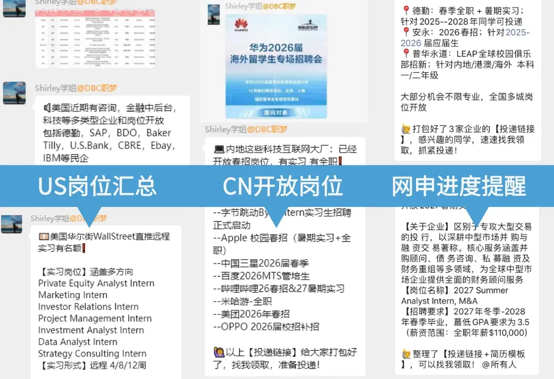 群内涵盖最适合UNC求职的美国&国内校招岗位、可工签岗位、应届生项目等岗位,1min浏览重点开岗消息: