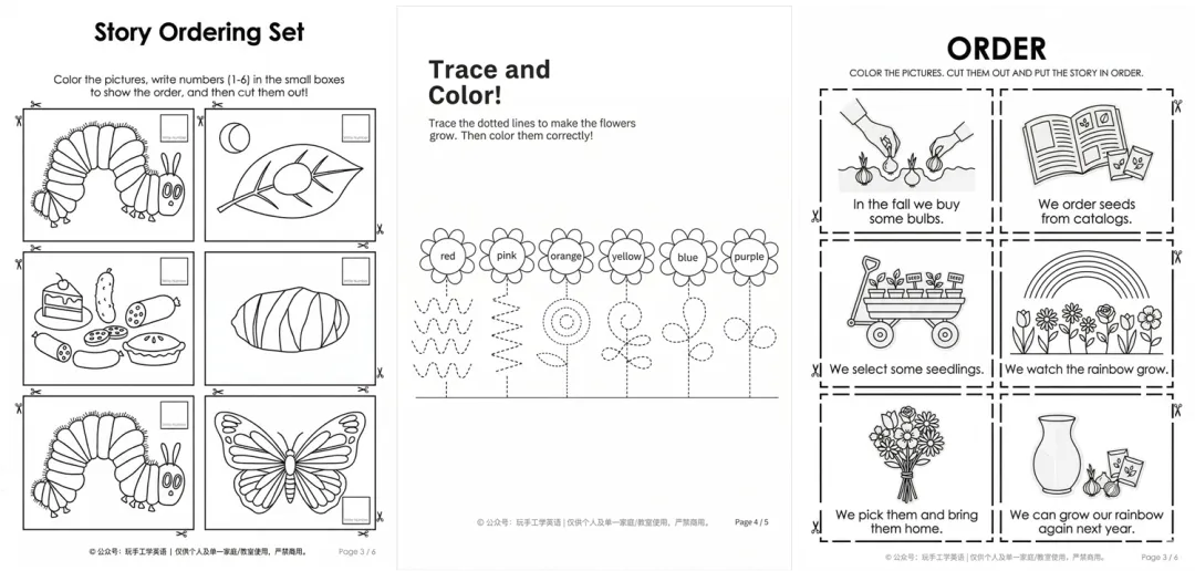 ✔ 20页 Printable 学习单: 包含闪卡、涂色、迷宫、逻辑连线、排序,边玩边巩固。