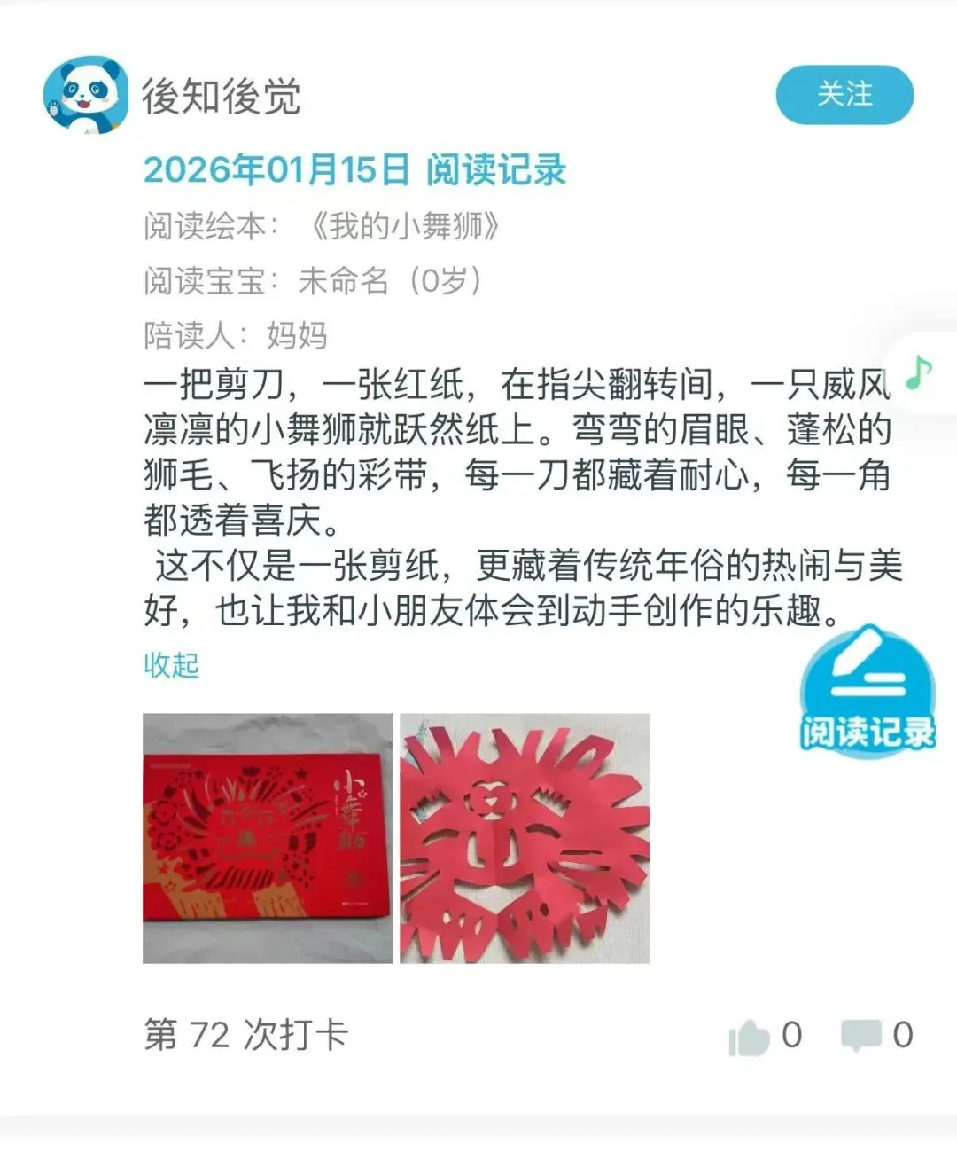 在1月我们邀请原创绘本《小舞狮》《今天去美术馆了么?》作者董昕昱,做客阅芽计划小程序直播间,带来一场年味十足的线上绘本手工课。直播累计观看人数 844 人,观看次数 1935 次。