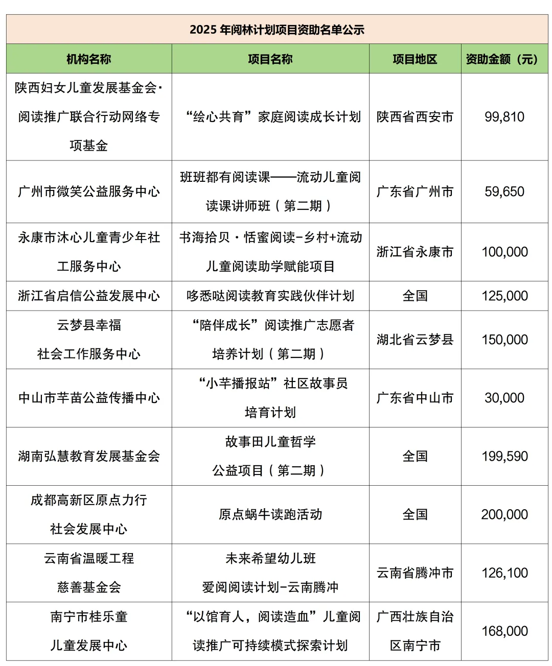 2026年1月,阅林计划2025年项目资助名单正式对外公示。根据《深圳市爱阅公益基金会项目管理制度》的规定,基于深圳市爱阅公益基金会的使命和愿景、阅林计划的资助定位,经过多轮沟通与审批会议,最终确定了10个项目为2025年阅林计划资助项目。