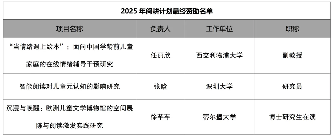 2025年阅耕计划资助名单正式公布