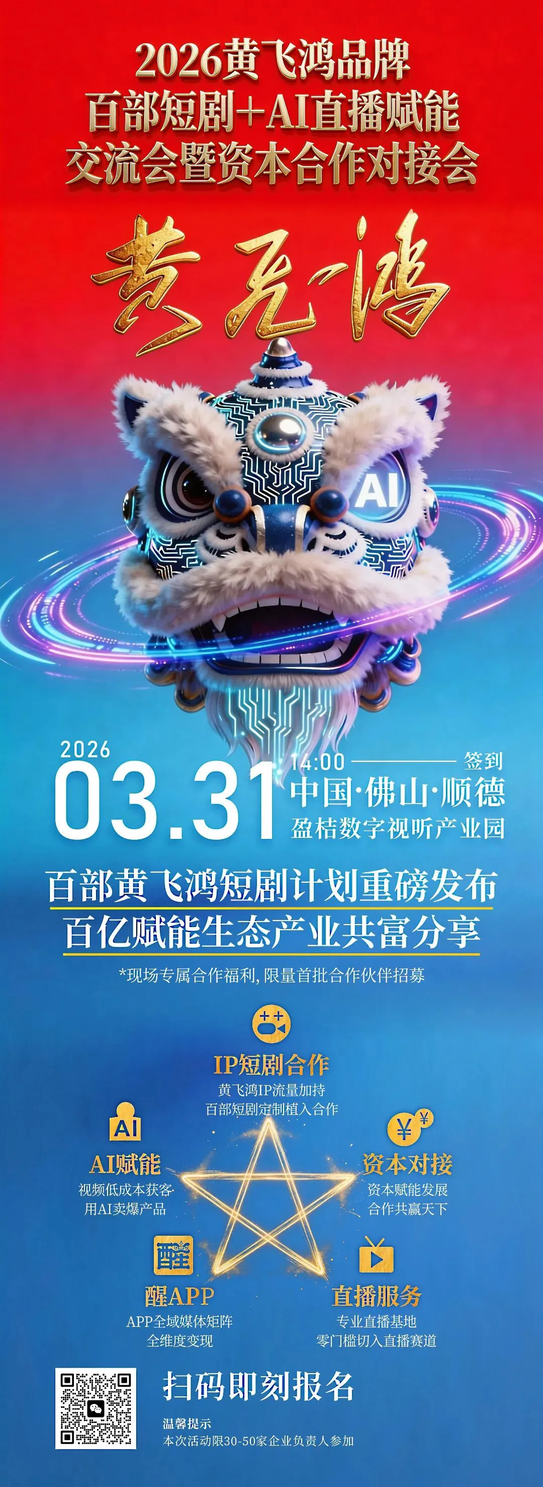 3月31日,黄飞鸿IP生态大会邀您共赴AI+短剧新蓝海