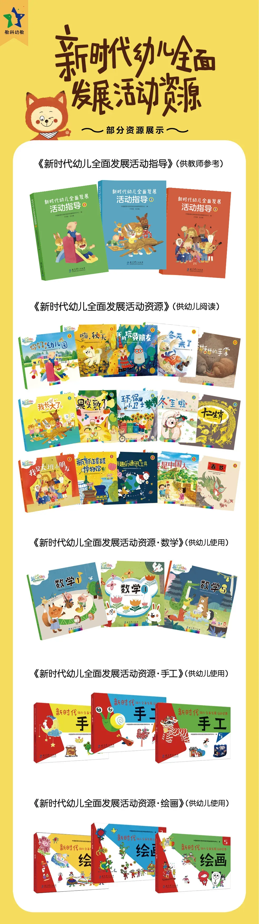 本资源根据当前我国教育发展的时代精神,落实立德树人的基本要求,强调中国文化在学前教育课程资源中的充分展现,同时注重对幼儿进行美育、体育、劳动教育等方面的培养,通过生动有趣、贴近幼儿生活和年龄特点的学习内容,让幼儿在潜移默化中获得全面优质的发展。提供全方位的资源使用服务和指导,贴近幼儿园教学实践的真正需要