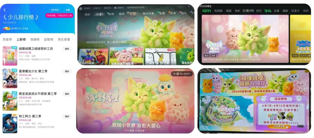 依托中录在儿童动画发行行业内20余年的积累,拥有40+多家平台渠道,上线后可覆盖全国大屏端渠道和全网音视频网站。每年投入百万发行推广资源包,能够为IP动画在各个端口申请首页推荐位、瀑布流、专题活动等最优上线资源,有效实现流量转化与收入增长。