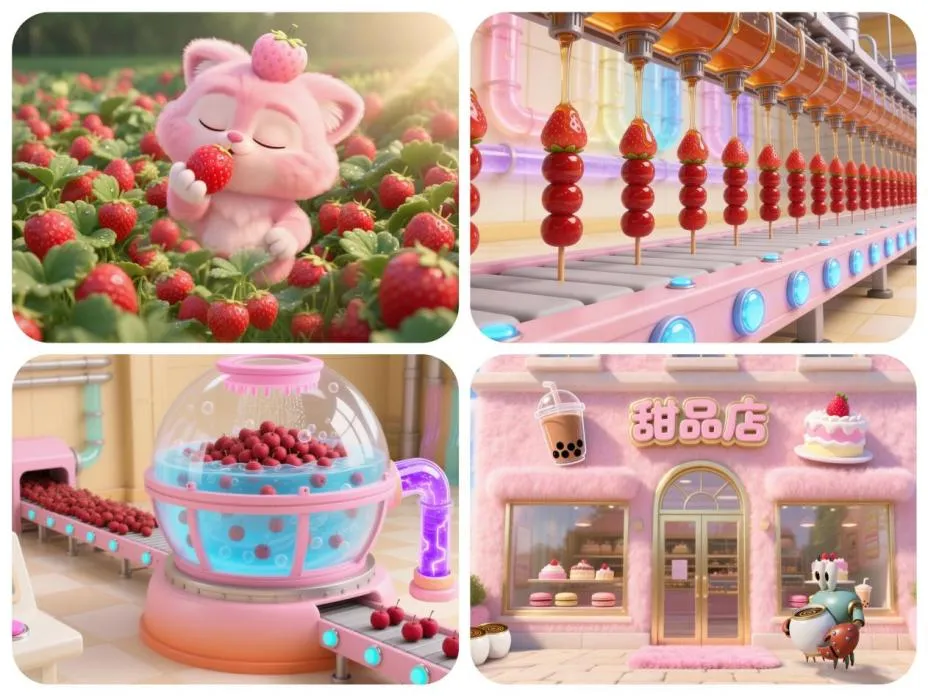 内容创作上,紧扣“治愈解压、寓教于乐”的核心。当下,短视频端流水线类治愈解压视频成为儿童及年轻人的新宠,“治愈、解压、舒适、情绪价值”成为高频词汇。项目团队顺势而为,通过温暖的事件引出解压的流水线制作过程,搭配温馨治愈的画风,让儿童在舒适的故事节奏和画面中,捕捉积极向上的情绪能量,同时了解实物的制作过程和原材料,实现娱乐与知识传递的双重效果。