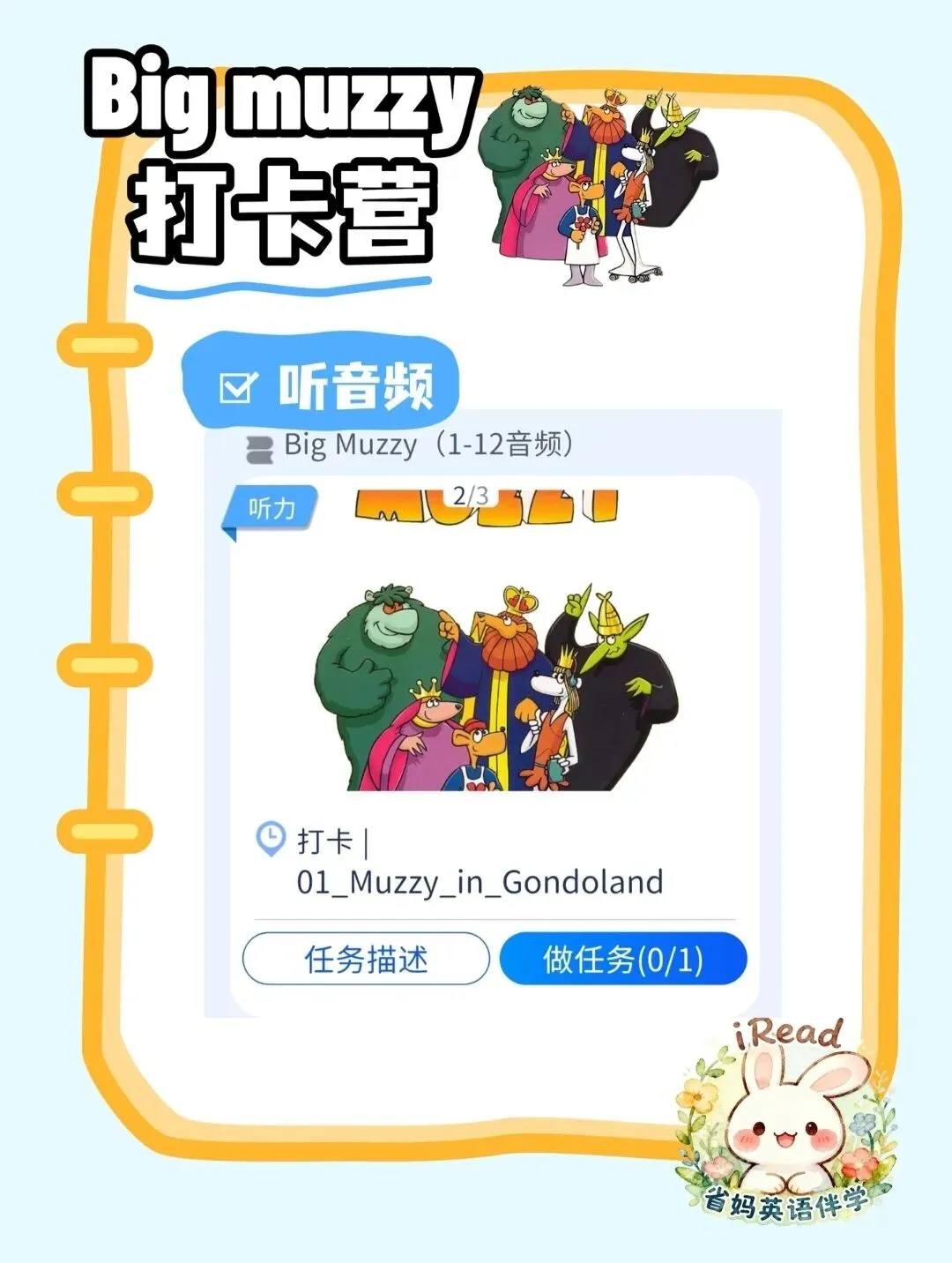 ✅ 打卡任务:收听《01_Muzzy_in_Gondoland》音频