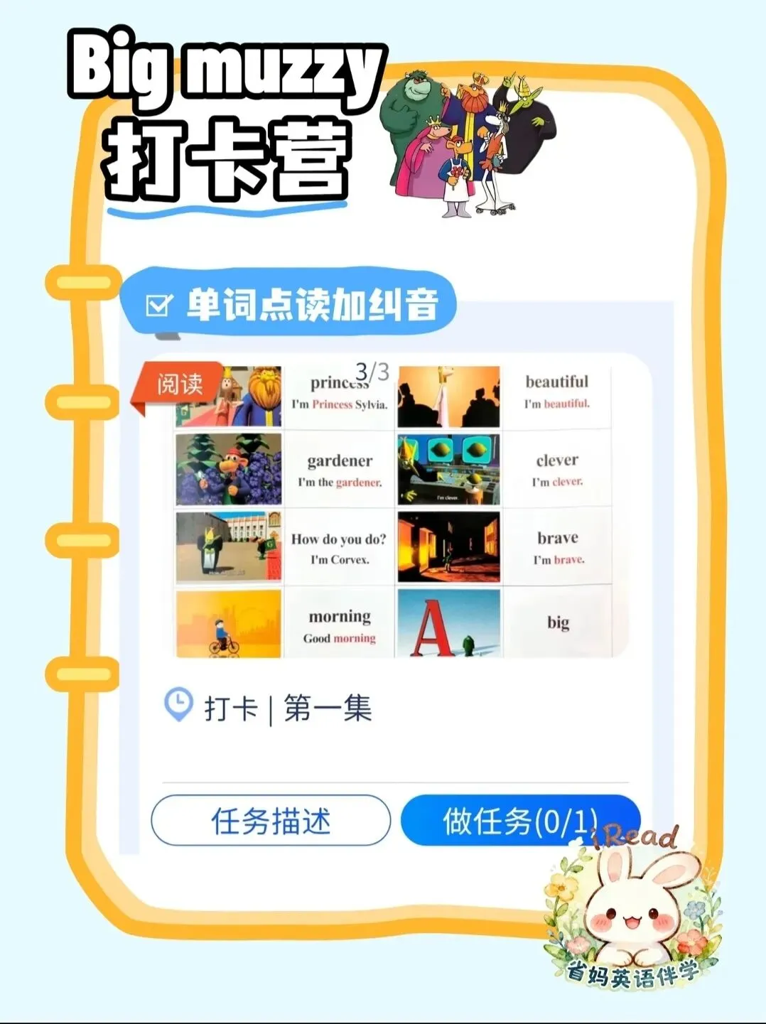 🔊 Big Muzzy打卡营|单词点读+纠音,精准发音不踩坑
