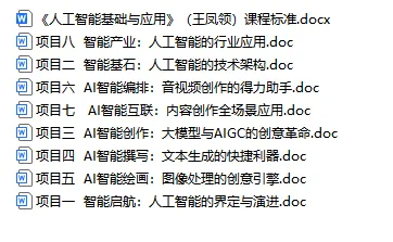 │ ├─ 《人工智能基础与应用》项目一教学大纲.docx