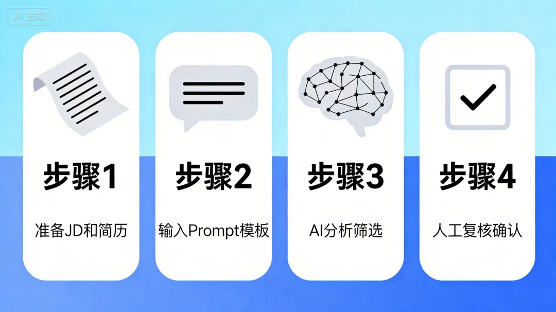 数据锚点:某HR团队统计,传统方式筛简历平均耗时占总招聘时间的40%,但面试成功率仅15%。二、AI筛简历的完整SOP(1200字,核心价值)