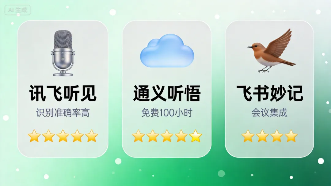 工具:讯飞听见(录音转文字)或通义听悟(阿里出品,免费额度充足)