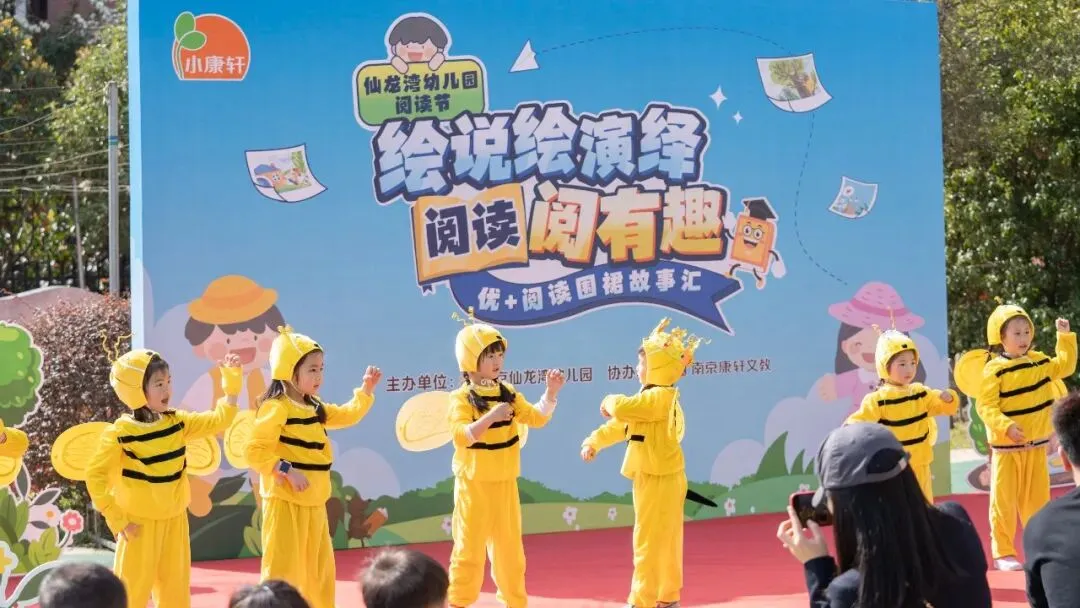 中班幼儿带来绘本情景剧表演,幼儿们身着角色服装,用稚嫩的语言和夸张的动作,将绘本故事中的情节精彩呈现。