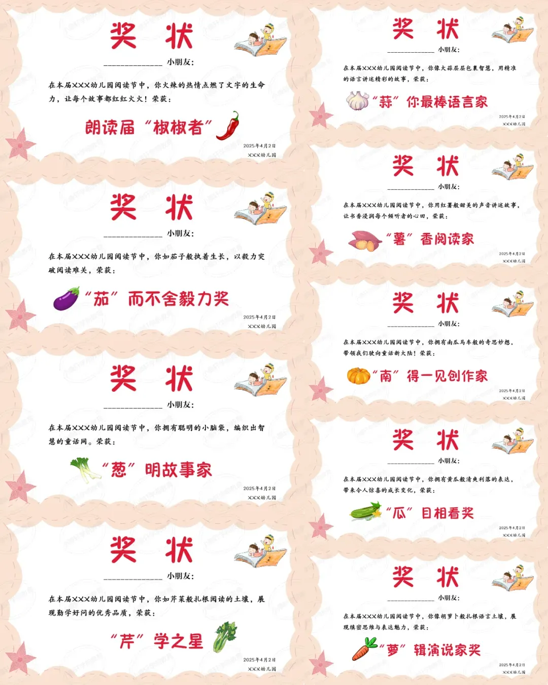>>文末下载领取《幼儿园读书节奖状模板》