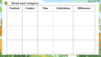 接下来就是从节日的时间、起源和庆祝方式三个角度出发,逐一开展综合练习。