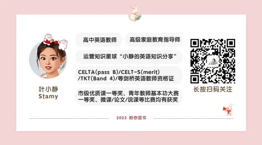更多的英语教学相关分享请移步小静的知识星球~除了教学设计之外,很多相关的思考和创意灵感和个人成长方面的内容也会在我的知识星球“小静的英语教学分享”里分享(和公众号内容不重复)。👉 一份知识星球使用指南